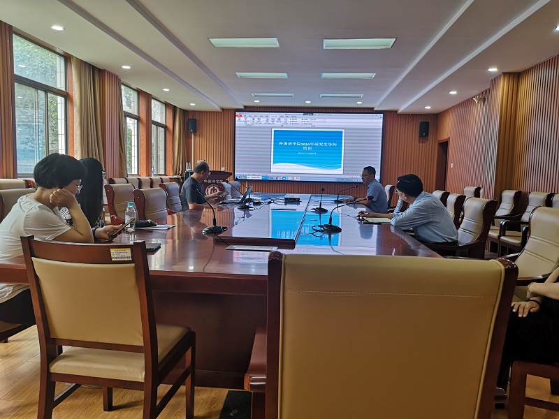 会议以秦洪武院长为培训主持人,会议主要分为两个方面的培训:培养政策、培养方案培训和研究生指导问题讨论。副院长王洪明主讲了研究生培养相关政策培训和外国语言文学、学科教学专业培养方案及相关问题培训;徐欣副教授主讲了翻译硕士专业培养方案及相关问题培训;鞠玉梅教授主讲了研究生选题指导讨论;寻阳教授主讲了研究生论文写作过程指导讨论,最后全体研究生导师积极进行了话题讨论,培训会议最终圆满结束。