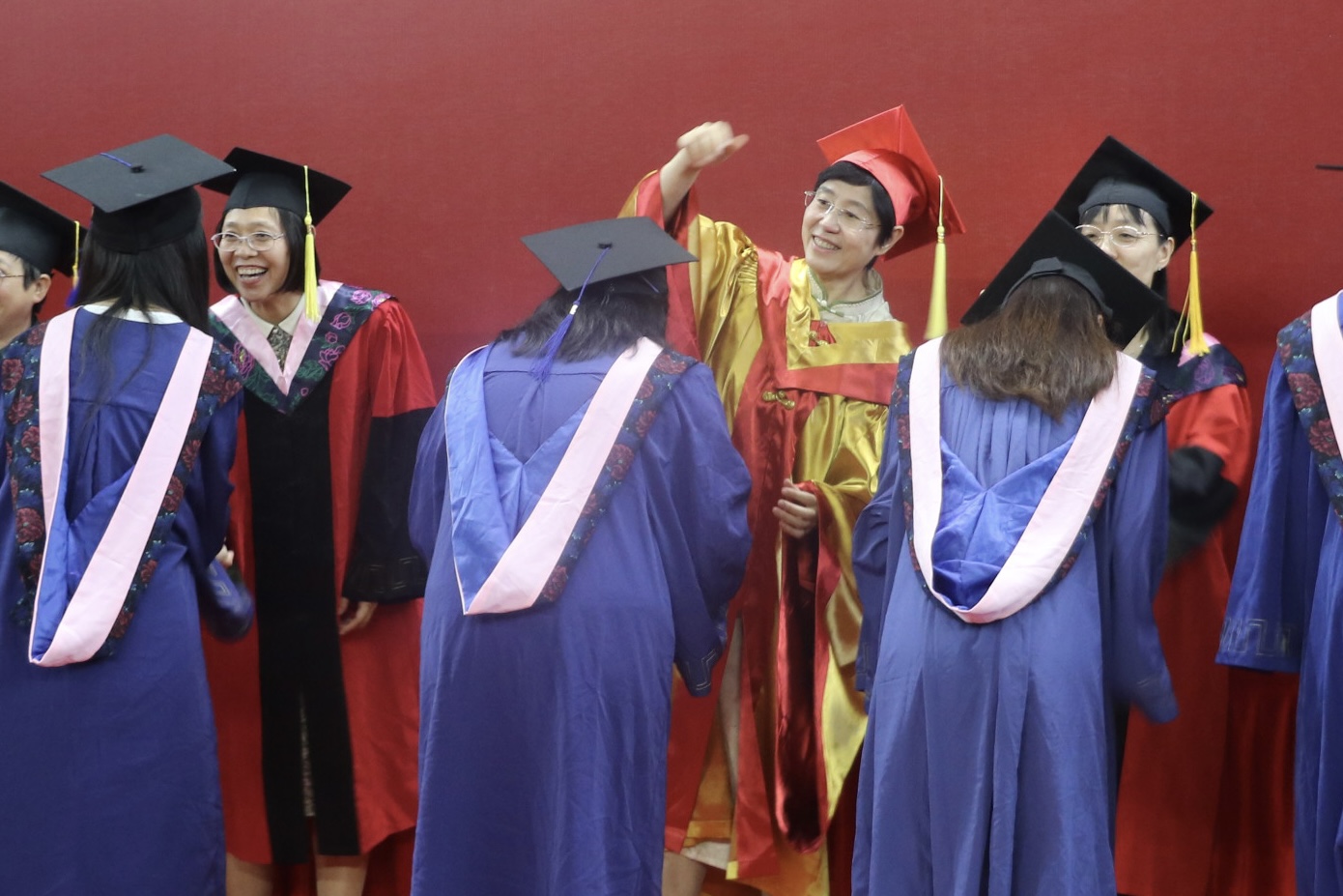高歌、徐庆利等十位导师身着红色导师服,满怀激动欣喜与不舍之情,为学生拨穗并授予相应学位证书。在庄严而神圣的仪式中,直播8官网