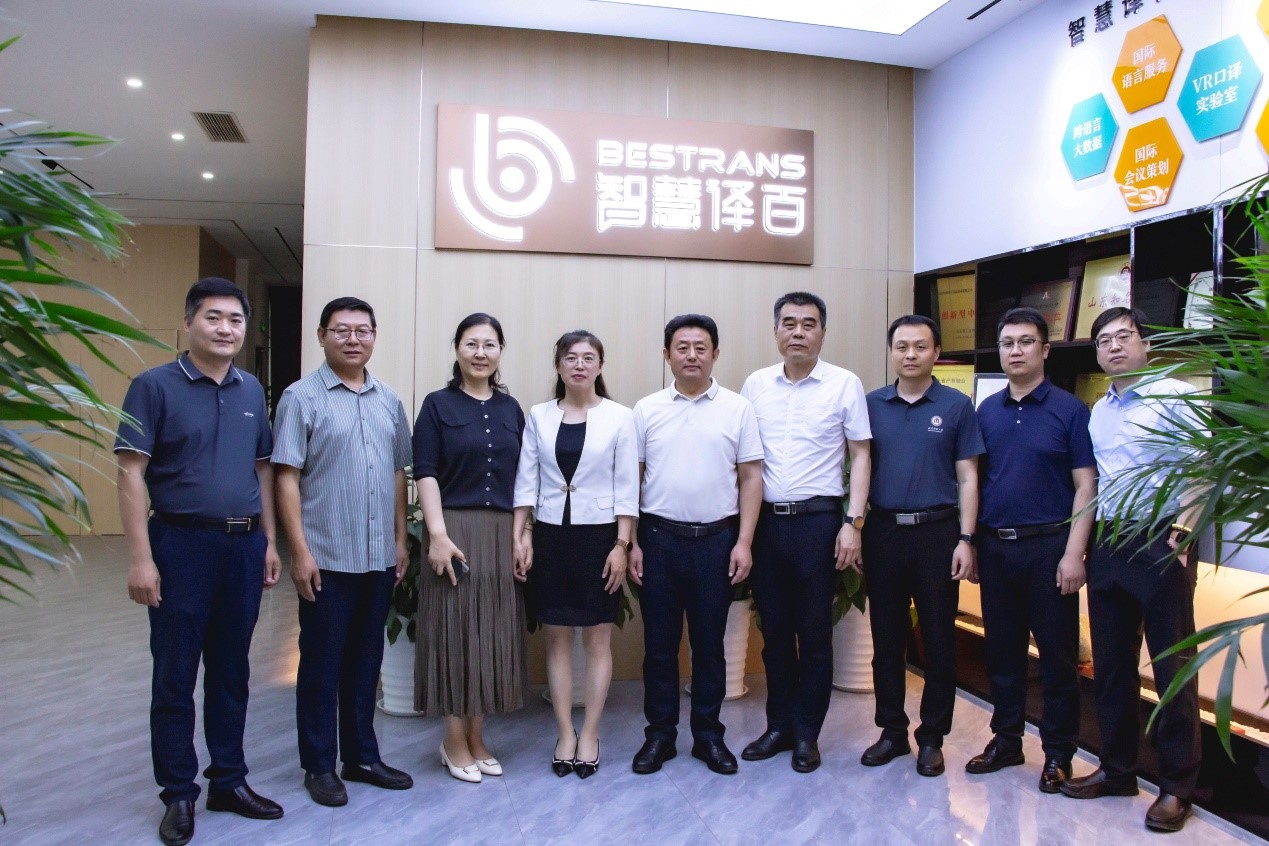 纪洪涛一行分别走访调研了福州译国译民集团有限公司、中语智汇科技(厦门)有限公司、伊明泰(山东)生物科技有限公司、山东智慧译百信息技术有限公司,通过现场观摩、座谈交流等方式,就人才培养及深化产教研融合和学生实习就业开展实地调研,并与企业举行了就业基地签约和揭牌仪式。