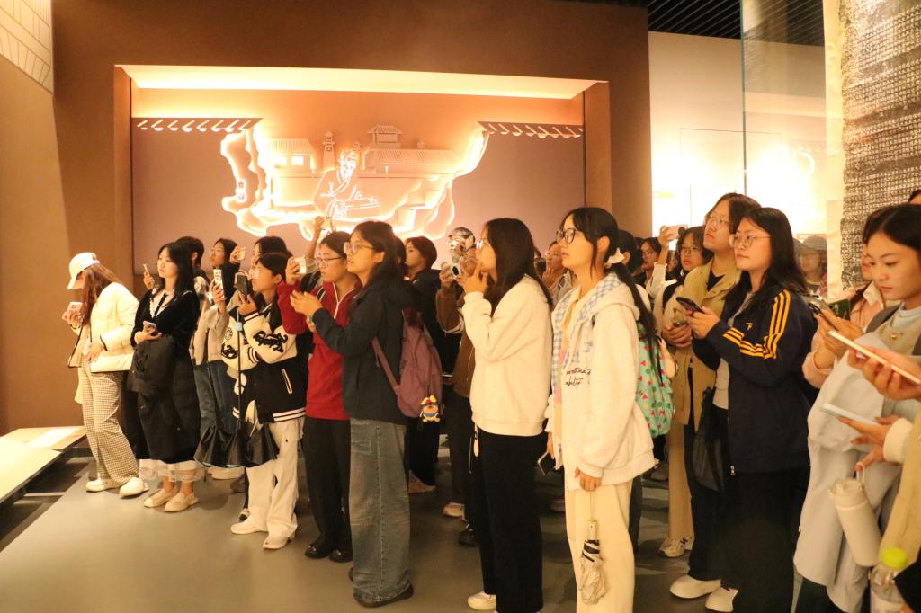 作为全国首座以教师为主题的博物馆,中国教师博物馆为新生提供了沉浸式感知中国教育史的课堂。在专业讲解员的引导下,同学们从弘道门出发,依次参观了“教师之史”“教师之道”“教师之魂”三个展厅,从教字构成、能者为师、孔子思想、教师革命、知行合一等几个方面生动诉说中国教育的源远流长与世代传承。一件件老旧的教具,一本本泛黄的手札课本,展现了中国教育从师道初振、杏坛讲学到现代化科学教育的深刻历程。参观过程中,同学们对师道传承有了直观而深刻的理解。