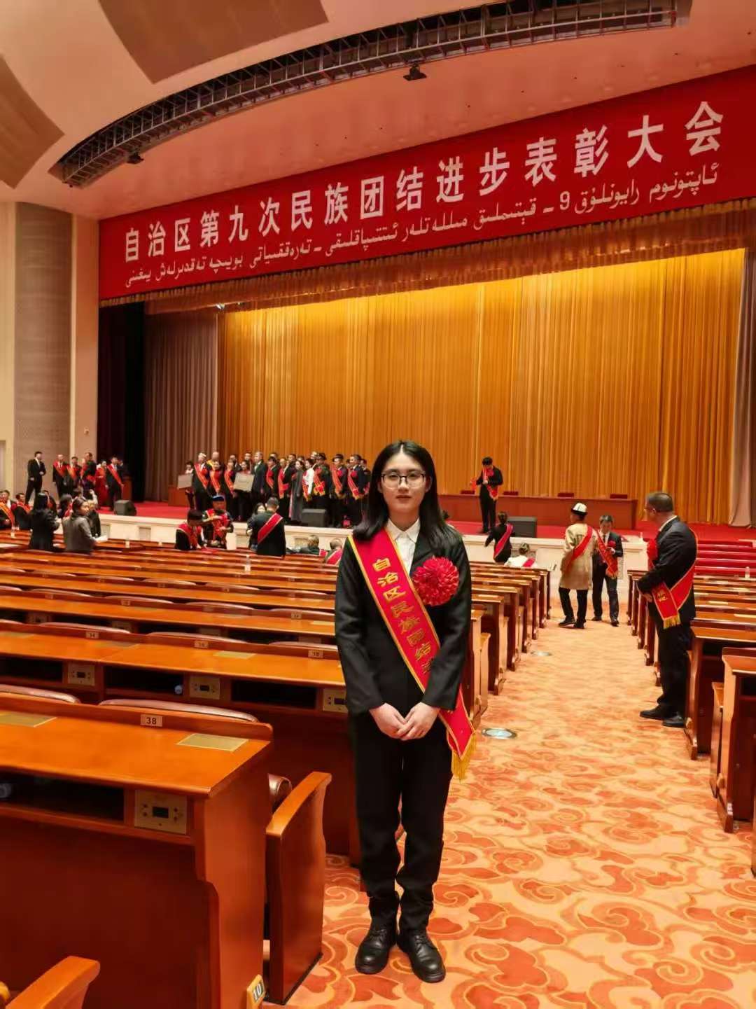 10月16日上午,自治区第九次民族团结进步表彰大会在乌鲁木齐市召开,来自阿克陶县巴仁乡萨依巴格村小学的西部计划志愿服务队荣获模范集体。直播8官网 2019级法语班常晴同学作为服务队代表,光荣领取集体奖项。