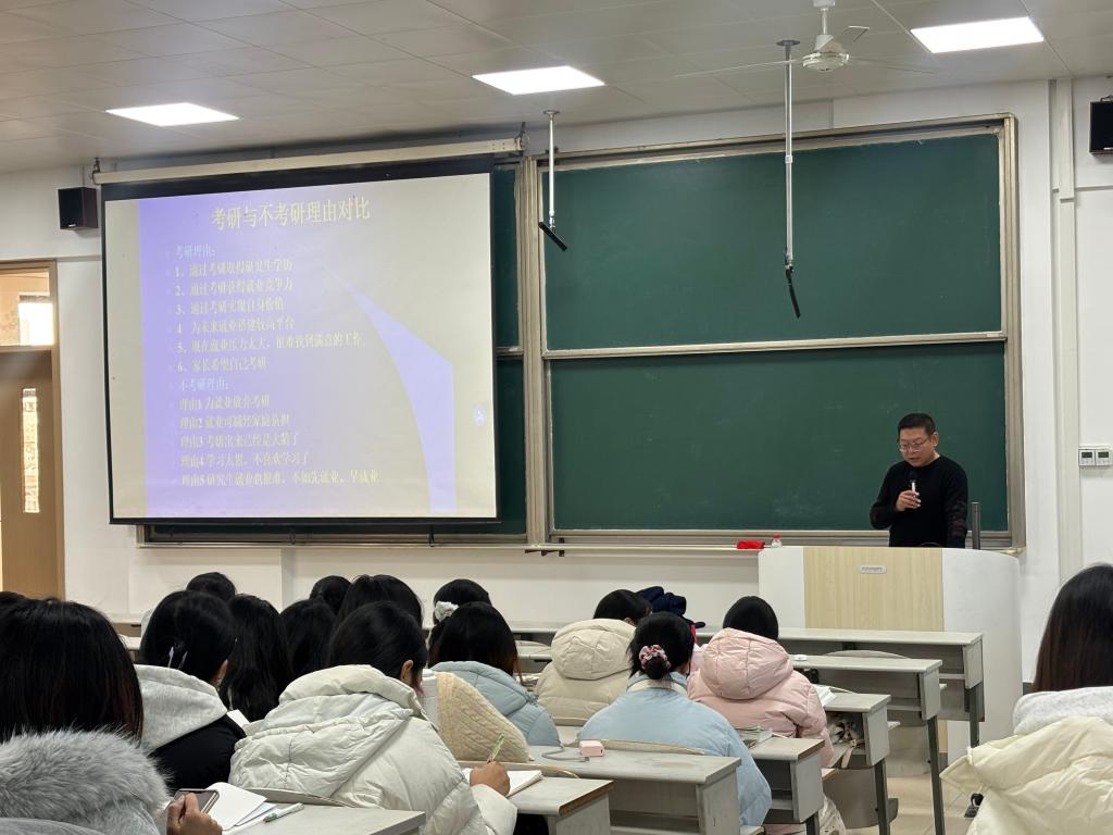 为帮助直播8官网 的同学们把握考研方向,制定科学的考研计划,12月3日,直播8官网 于综合楼501教室举办2023级考研形势分析报告会。本次报告会由直播8官网 党2023级本科生辅导员徐明涛主持直播8官网 党委副书记王作茂、直播8官网 副院长邢加新主讲,2023级全体本科生参加。