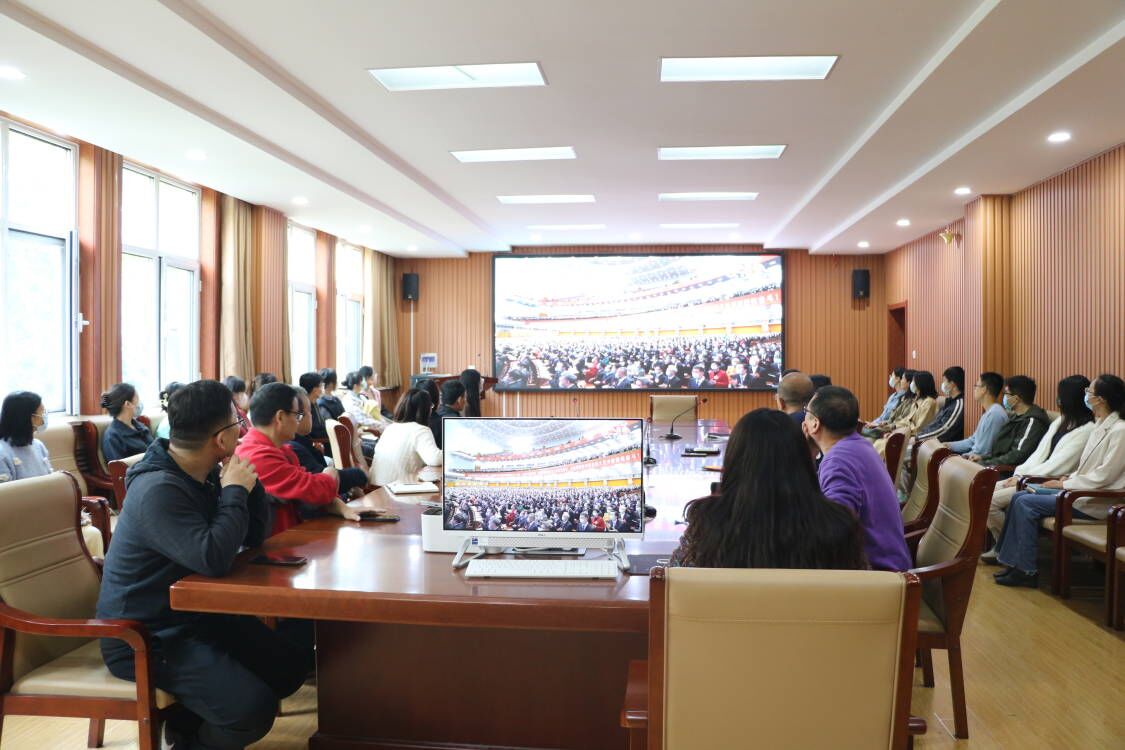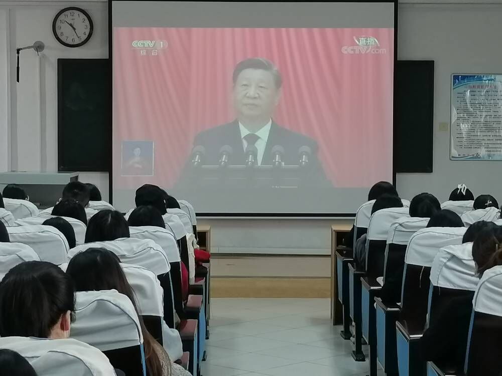 党委委员、党政领导班子、全体学生党员、入党积极分子代表在系楼101、206和301室集中收看,其他师生线上收看大会直播。
