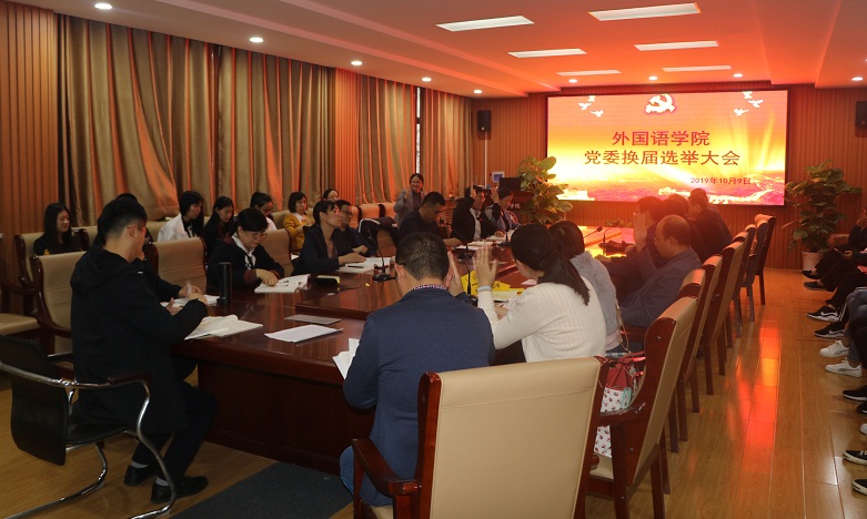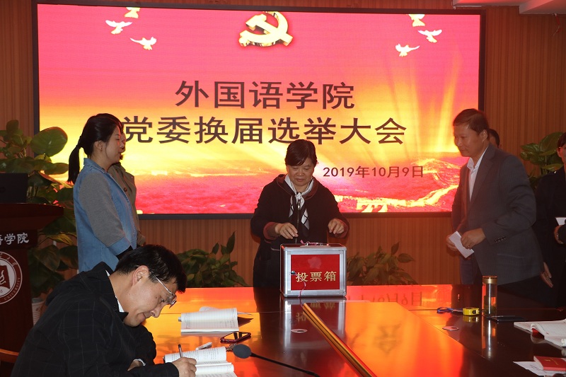 全体师生党员大会进行外国语党委换届选举工作。换届选举大会由直播8