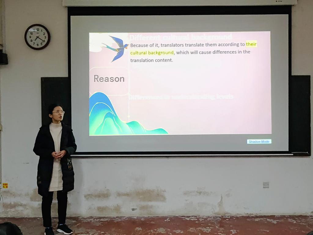 本次比赛分为初赛和决赛两个部分。初赛围绕中华优秀传统文化展开,选手们需准备三分钟的演讲以阐明有关文化的翻译问题。同学们展现了出色的语言能力和文化素养,传递出经典文学作品中的深邃意境和独特风格。在决赛过程中,选手们随机抽选句子并进行现场口头翻译。比赛在同学们声情并茂的演讲中拉开了帷幕,选手们落落大方地展现出自信的风采,给在场的观众和评委们带来了一场听觉盛宴。最终,经过激烈的角逐,马靖淇、唐艺宁、张佳琪等同学在比赛过程中表现出扎实的语言基础和广泛的知识储备,以及对英语和汉语文化的深入理解和敏锐感知,给观众和评委们留下了深刻的印象,取得了一等奖的优异成绩。