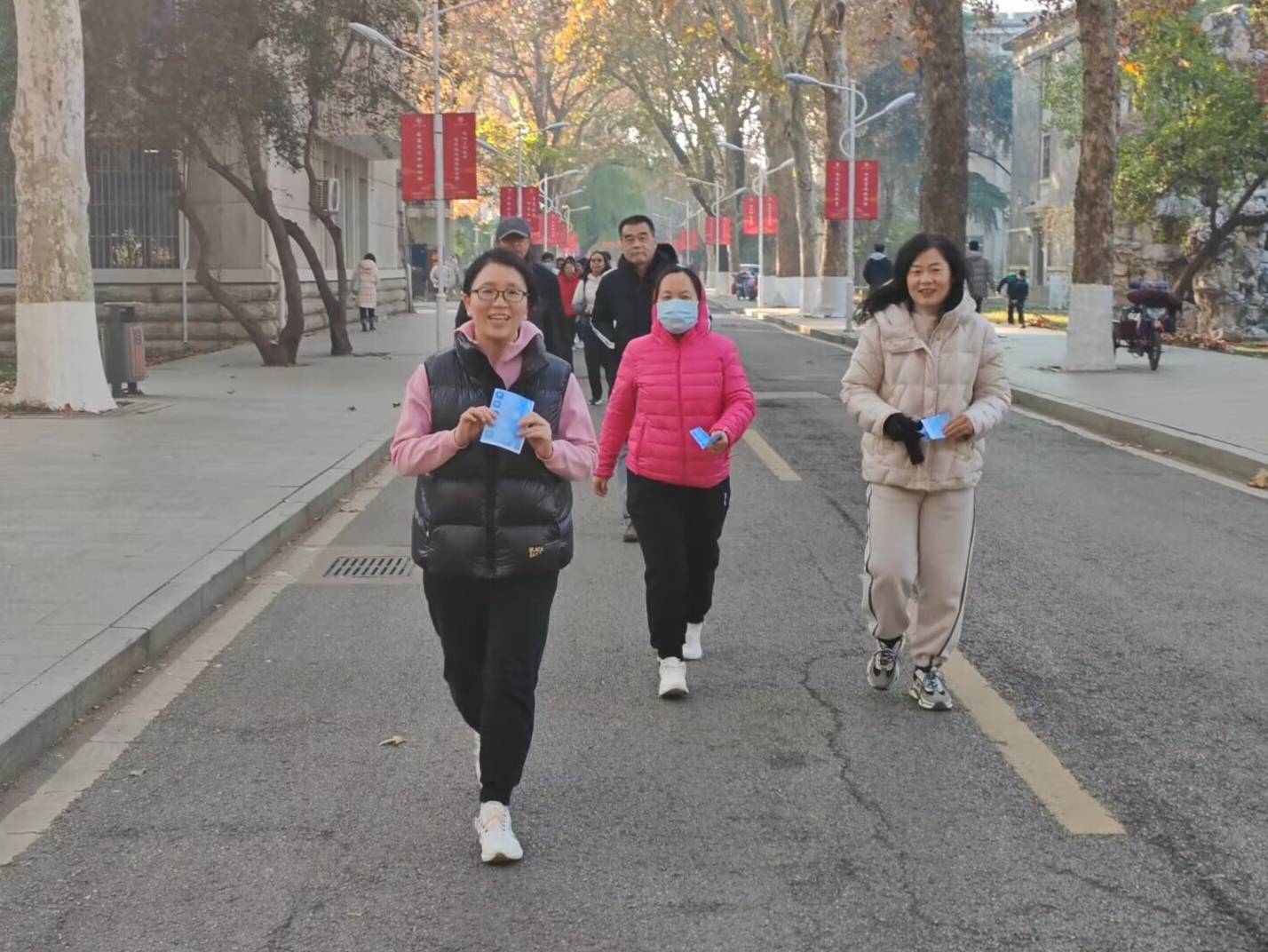 随后进行个人比赛,在定点投篮和抢凳子环节中,同学们热情高涨,动作稳健,技术娴熟。王雪丽、周悦等同学表现出色,在各自项目中取得一等奖的优异成绩。与此同时,老师们参与到环校徒步走等活动中,他们与学生志愿者一起以昂扬的姿态和矫健的步伐前往不同地点打卡,体现出积极向上的精神风貌。师生们在漫步校园时既获得了身心的轻松,又欣赏到初冬的曲园美景。
