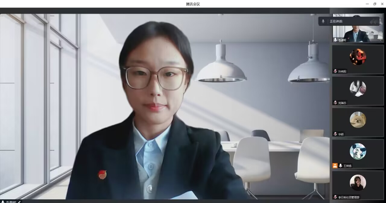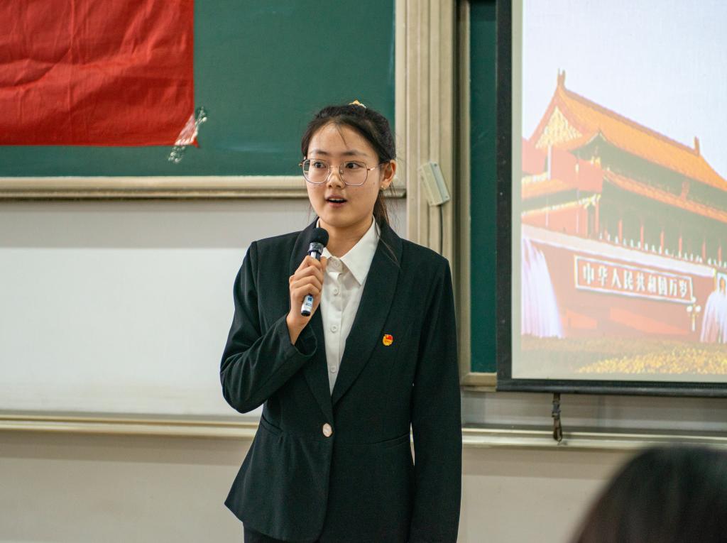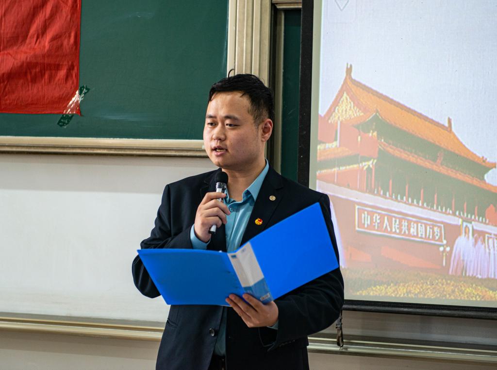 参会人员集体奏唱国歌后,大会正式开始。辅导员赵文彬代表直播8