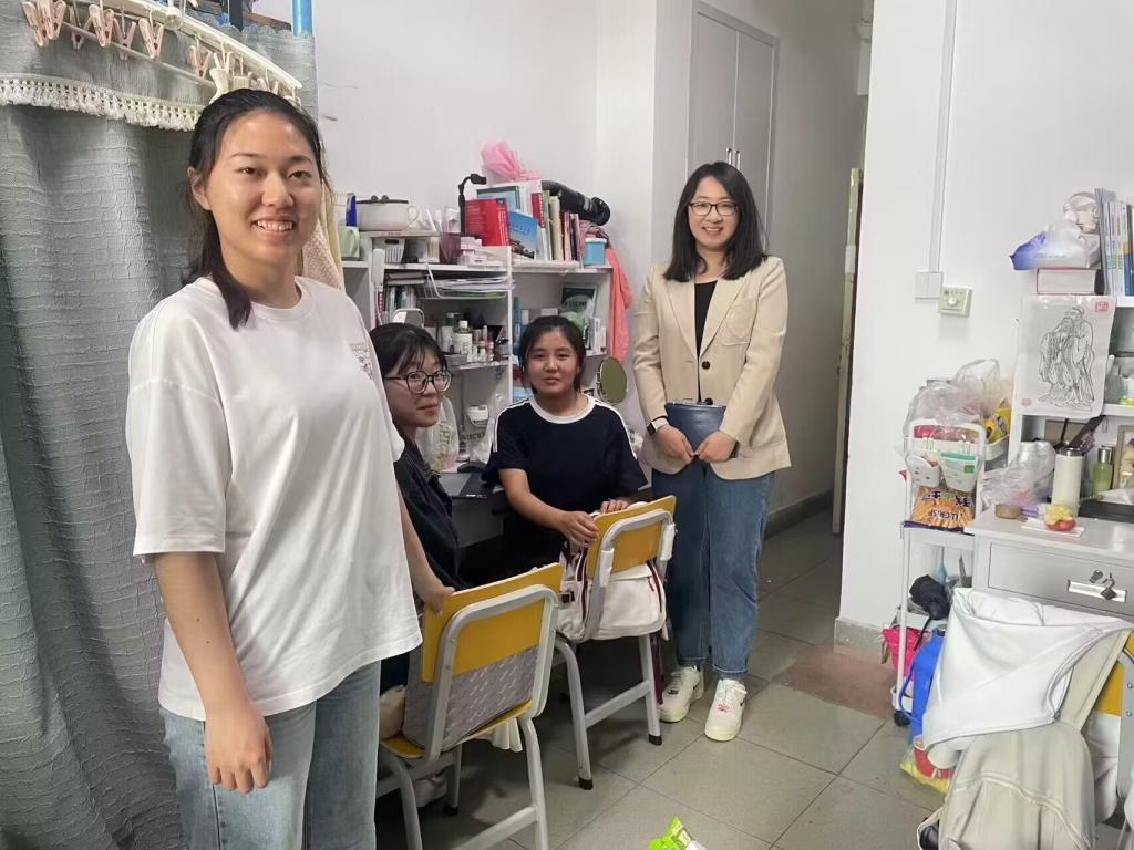 随后,老师们走访了学生宿舍并与同学们进行了亲切交流。老师们关心同学们在校期间的生活情况,并叮嘱学生宿舍安全用电,针对宿舍卫生、防火防盗、人际关系、生活习惯等问题提出了意见和建议,希望同学们团结互助,共同营造安全舒适的生活环境。