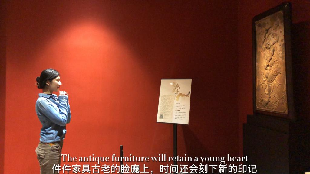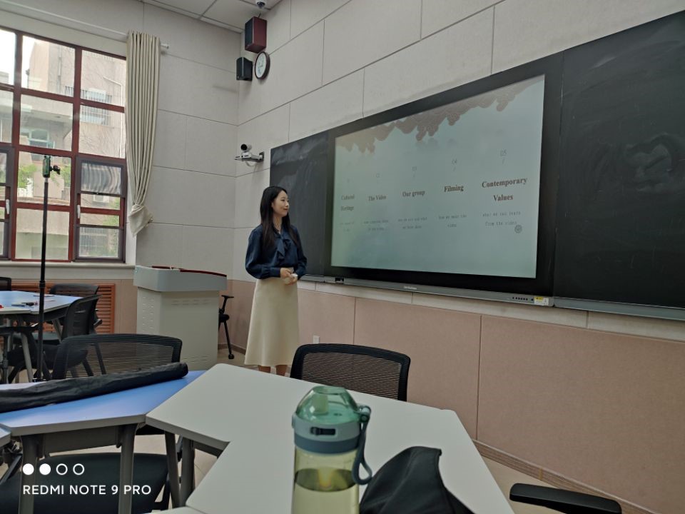 在视频制作过程中,三位同学运用扎实的英语专业知识和精湛的视频剪辑技巧,巧妙地将传统鲁班精神、当代工匠精神和鲁作家具融入进视频,从视频画面的拍摄、设计与制作到文稿撰写和字幕配音,反复打磨,以精彩的语言和唯美的画面呈现了传统鲁作家具的魅力。在全国交流活动上,王孜淳同学用流利的英语在线展示了视频的制作过程、团队风采、视频当代价值等内容。