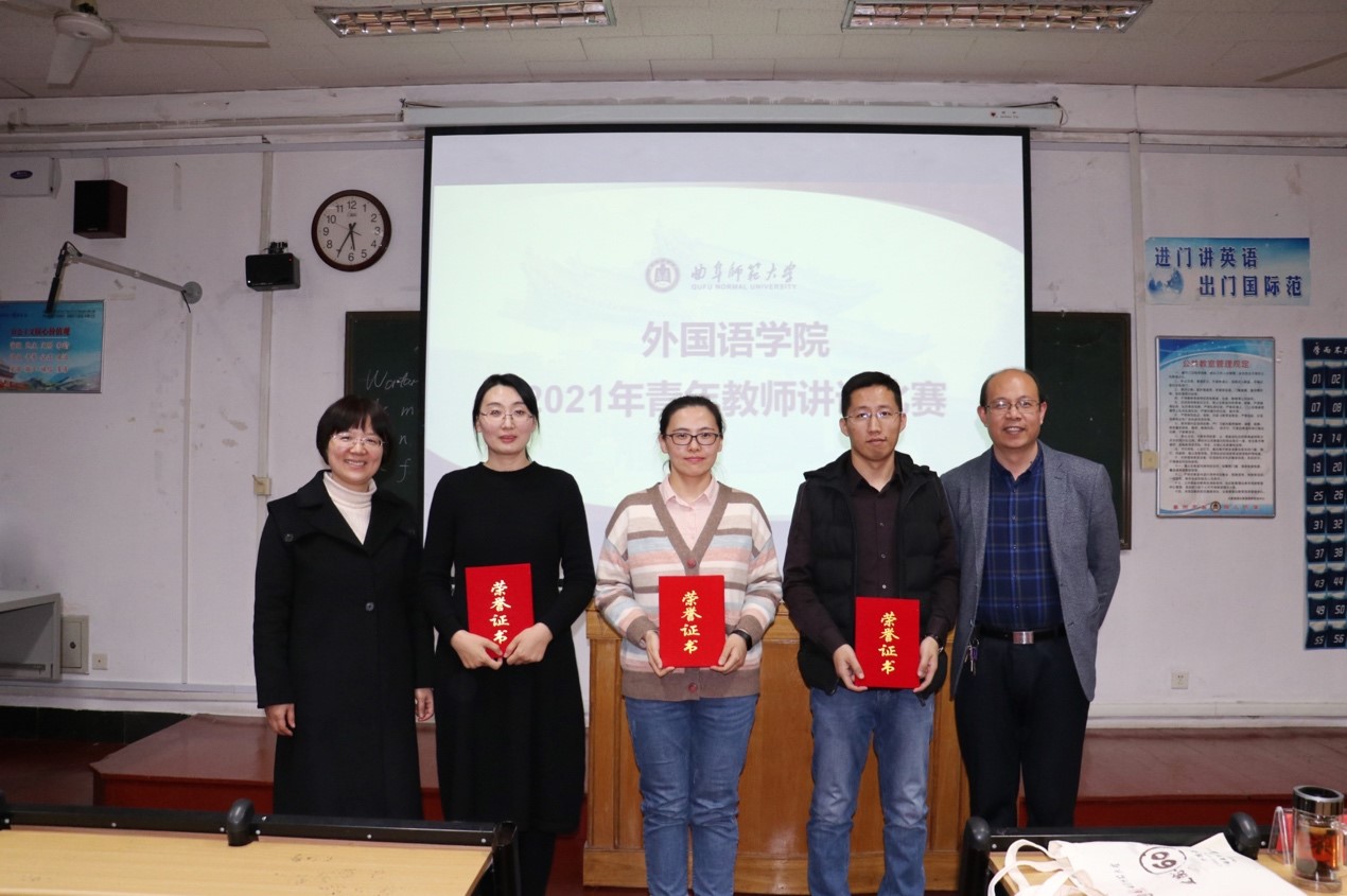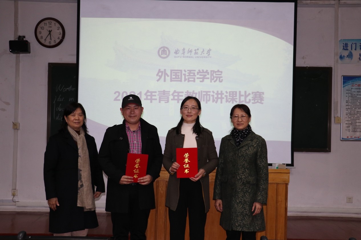 为教师搭建的教学交流和展示平台,对于青年教师来说也是一次难得的成长经历。最后,邢加新副院长宣布比赛结果,顾仕轩、李涵、李静、任雪丽、兰海英、王扬六位老师荣获本次青年教师教学比赛三等奖,田守欣、鞠雪霞、毛慧洁三位老师获得二等奖,孔艳艳、满虎老师荣获一等奖。各位评委为获奖选手颁奖并合影留念。
