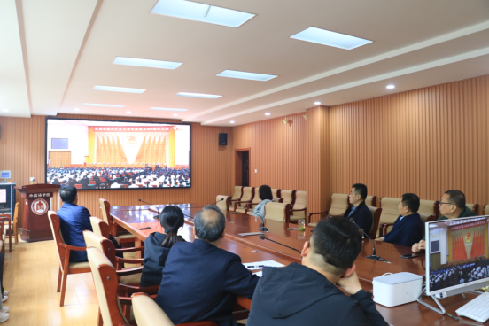 5月10日上午,直播8官网 党委理论学习中心组(扩大)会议在直播8 206召开。会议集中观看庆祝中国共产主义青年团成立100周年大会直播。中心组全体成员、辅导员、教师代表及学生代表参加。