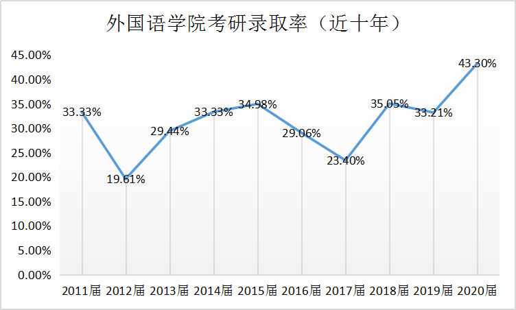 随着考研结果的陆续公布,直播8官网 捷报频传。截止目前,直播8官网 2020毕业生共有254其中:英语、俄语、法语总计194人,英语公费师范生60人报考187人其中:英语、俄语、法语总计171人,英语公费师范生16除公费师范生外,报考率达88.14%,过国家A线比例达到54.6%,共有95名同学顺利考了硕士研究生(其中:英语、俄语、法语考取84名、英语公费师范生考取11名除公费师范生外,考研升学率达43.3%,其中10名同学被国外高校录取。考研成功人数、升学率均创新高。
