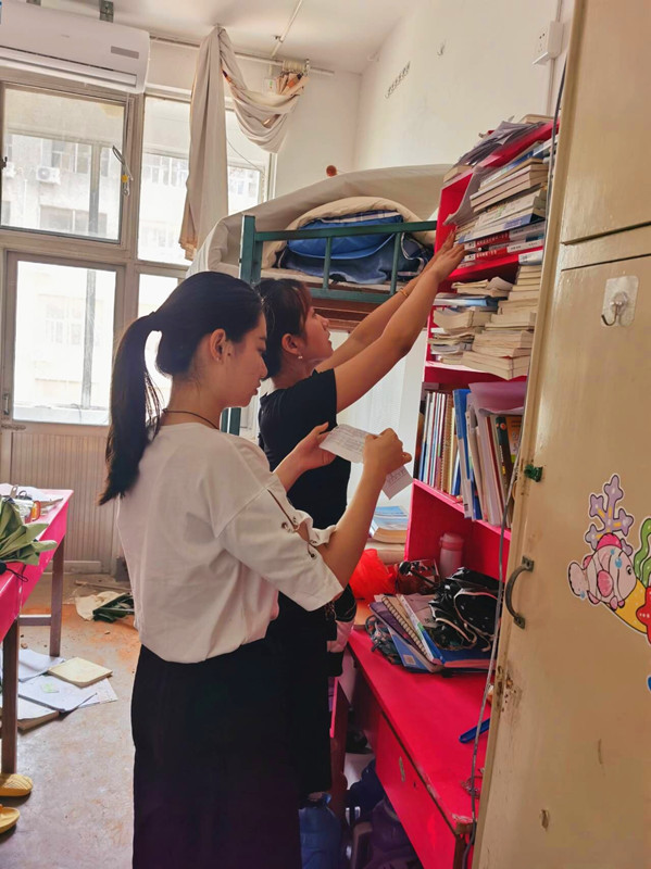 2020625日,端午假期第一天,直播8官网 2016返校毕业生志愿者在辅导员张晓老师的带领下,深入学生宿舍,帮助2019学弟学妹们寄送急需物品。