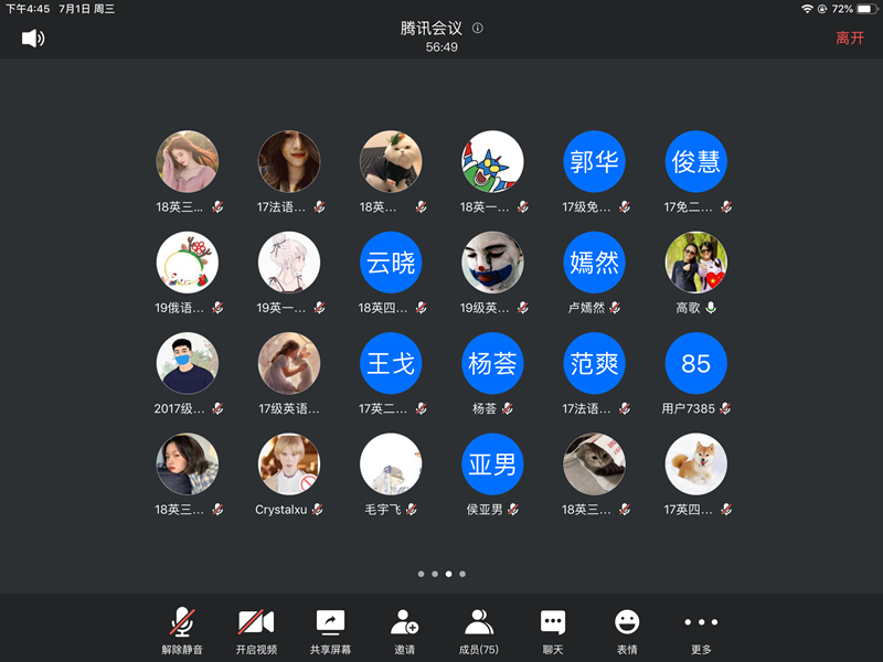 英语系主任高歌通过腾讯会议为外院学生讲解了夏季小学期的相关事宜。2017、2018、2019级各班班长、团支书和学习委员共同参与会议。