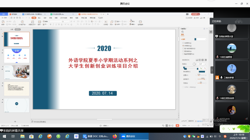 于7月14日上午举行大学生创新创业项目解读讲座。本次讲座由邢加新老师主讲,2019级辅导员张晓老师主持,2019级全体同学参加本次讲座。