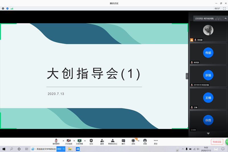 2020年大创项目各指导老师组织项目成员开展线上指导会议。