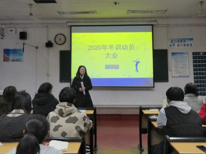 增光添彩。2020级辅导员王伟为冬训队长颁发聘书,保障冬训队伍训练的计划性和科学性。2020届团委学生会主席金文政号召全体同学充分利用这段宝贵的时间,统一思想,坚定信念,集中精力,以饱满的精神状态进入冬训。振奋人心的冬训宣传片展示了训练的日常,激发了同学们的期待;优秀运动员代表郑琪、宗旖、王成彬讲述了冬训的切身经历及感悟,坚定了同学们的信念。