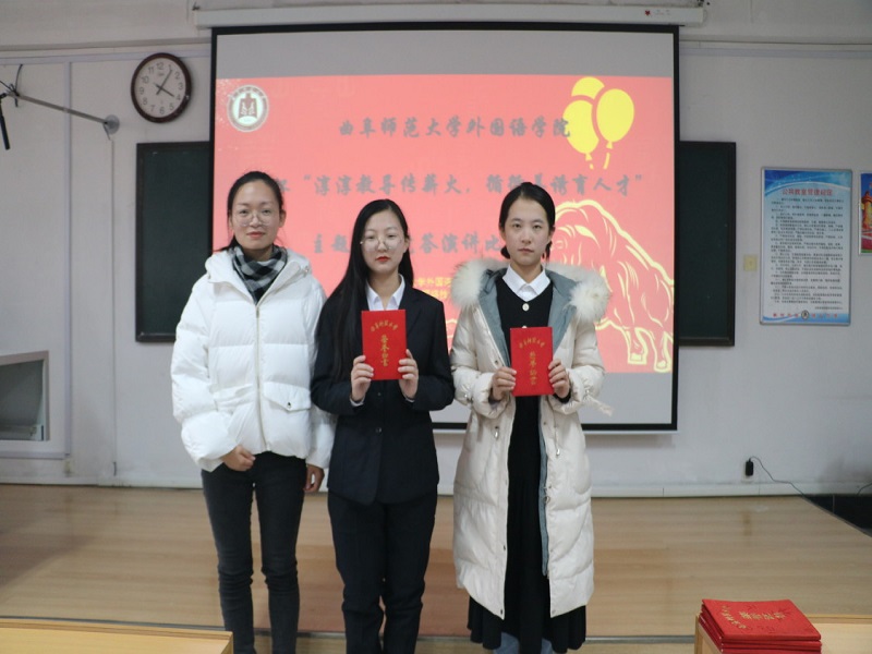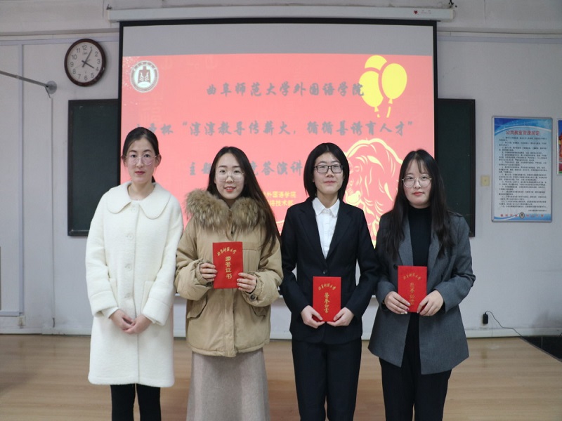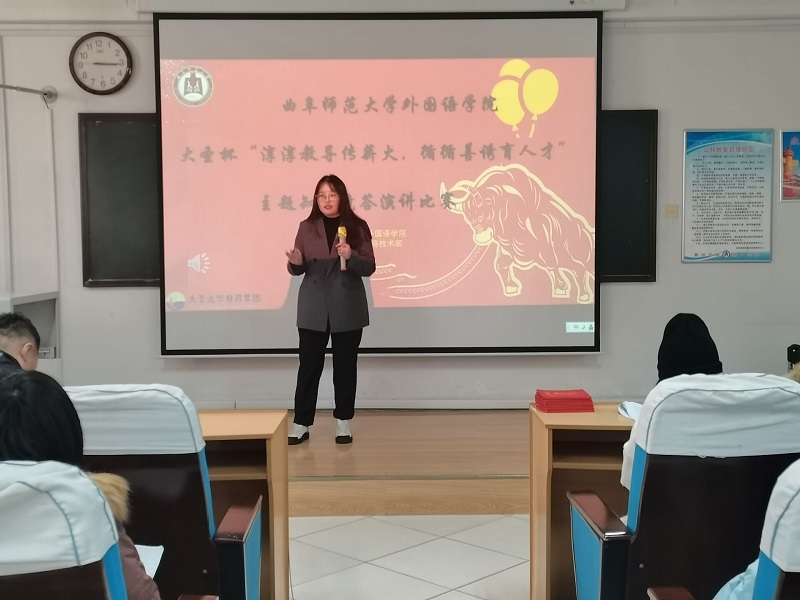 此次比赛共分为校史知识竞答和主题演讲两个环节,比赛成绩取三位评委所给分值的平均分。在校史知识竞答环节中,选手们全神贯注地投入到竞答比赛中,充分发挥主观能动性,为取得答题权争分夺秒。在主题演讲环节,参赛选手依次上台讲述他们心中的亮丽曲园,每位选手都真情流露,深情地表达了他们对曲园的热爱与真挚祝福。其中,二号选手刘笑如凭借全英演讲的独特方式,搭配制作精良的精彩视频,获得了现场观众的阵阵掌声。赛后,2018级辅导员赵文彬对各位选手的表现进行了点评,肯定了选手们的精彩表现。经过各位老师的评审,刘笑如荣获一等奖,汤馨馨、姜桂获得二等奖,樊小慈等三位选手获得三等奖。