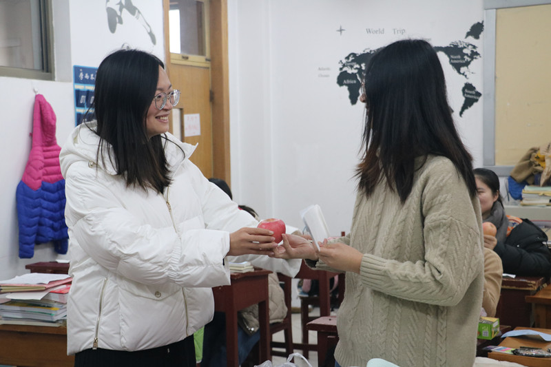 老师们分别将直播8 精心制作的考研爱心礼包分发给同学们,并为他们加油考研爱心礼包”中有糖果、水果以及与水果寓意相贺卡:柿子象征着柿柿顺心、万“柿”如意,橙子寓意着学业有“橙”、心想事“橙”,橘子寓意着一“橘”夺魁……这一份份充满温暖的礼物,令正处紧张备考状态的考研学子们感受到来自直播8 的温暖与爱。同学们收到爱心礼包,脸上洋溢着幸福的笑容。