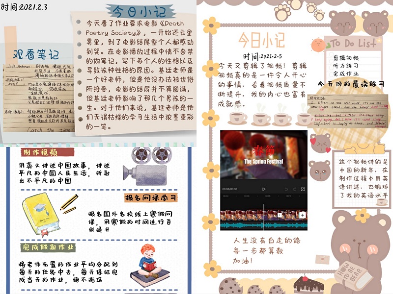 学子饱满的生活热情和积极的学习态度。其中,2020级王孜淳的电子手账尤为精美,每一页手账都图文并茂,不仅有自己的学习记录,还有日常的生活反思,给评委们留下了深刻的印象。经过三位评委的仔细评选,王孜淳和杜颖琪两位选手脱颖而出,同时她们的作品也将代表直播8官网