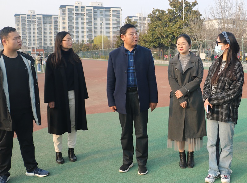 团委老师张晓、辅导员王伟、赵文彬及2021届学生会主席团成员前往西操场看望春训的学子们。