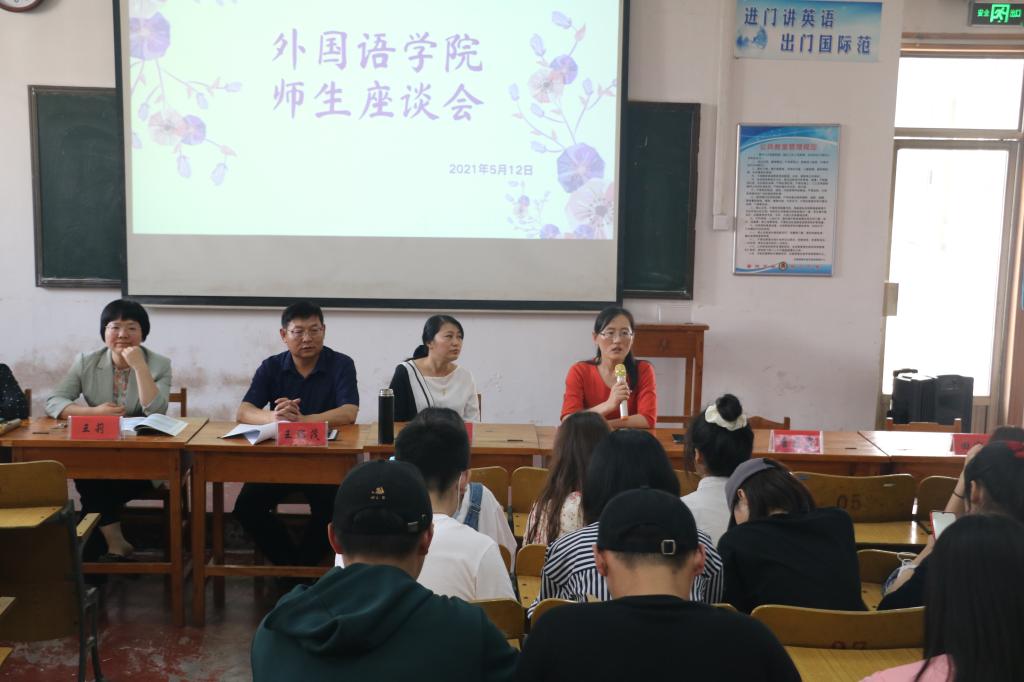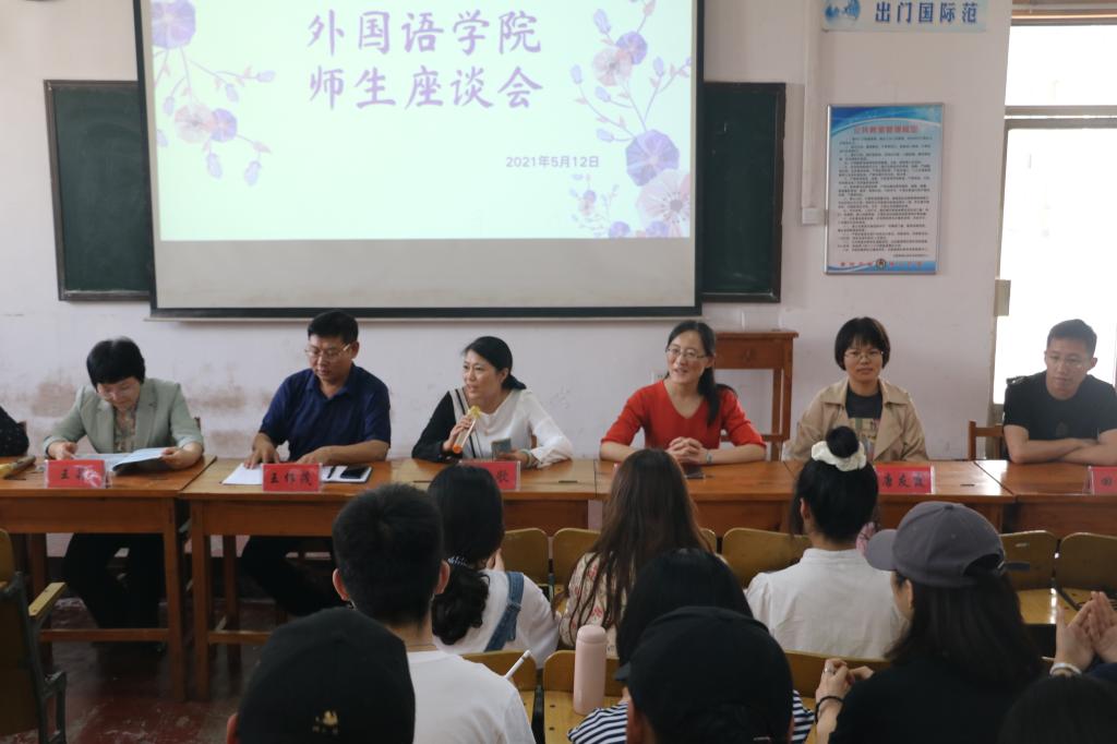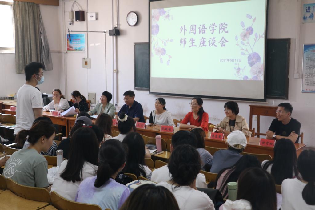 本次座谈会在同学们的期待中拉开帷幕。首先,各位老师就综合英语学习、专业四级备考、学习习惯养成等问题给出了建设性意见,并鼓励广大学生努力抓住机会,把握疫情之后的大变局。其中,王莉老师指出:语言学习需要大量的时间投入,学生应该增进思维深度,树立正确观念,做好自身时间管理。各位代表认真记录,汲取经验并表示受益匪浅。在之后的学生代表提问环节,各位代表踊跃发言,提出了同学们在时间协调、书目阅读、资料检索、生词处理等方面遇到的难题。老师们对此进行一一解答,并建议同学们跳出舒适区,积极进行辩证思考。最后,王作茂书记还鼓励广大学生干部重视班级风气、起好带头作用。
