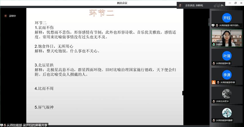 进行线上“学子怀德,沐浴儒风”论语大赛选拔赛。