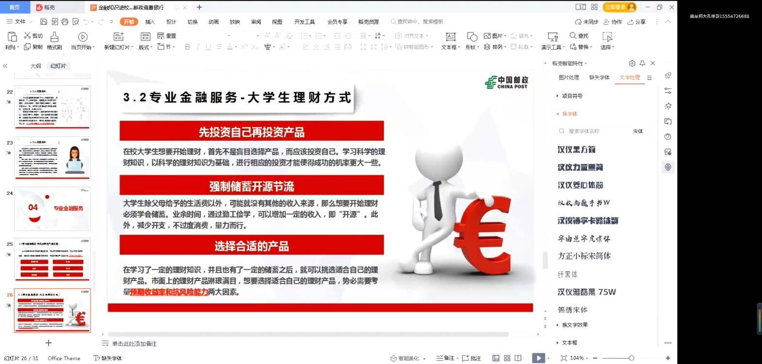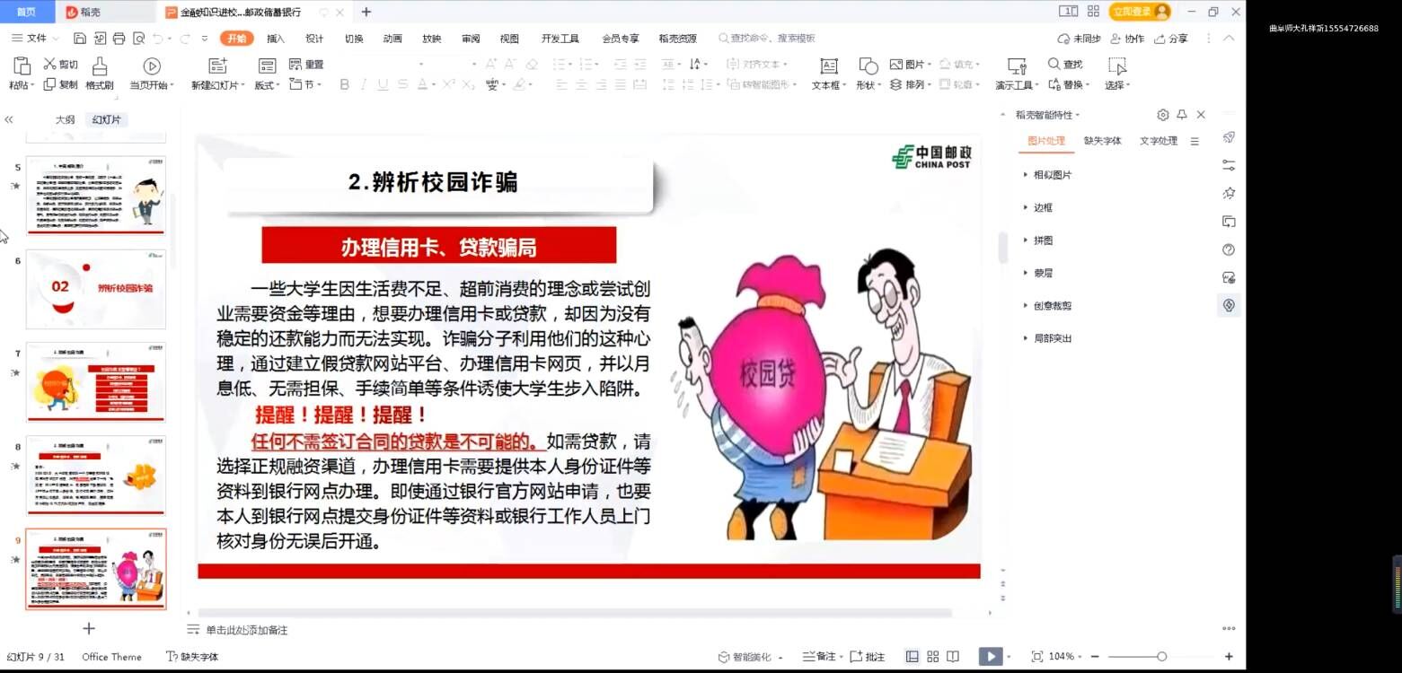 联合中国邮政储蓄银行,于线上召开金融安全及防诈骗教育讲座。本次讲座由2022级辅导员赵文彬主持召开,邮政储蓄银行曲阜师范大学支行孔祥新经理主讲。