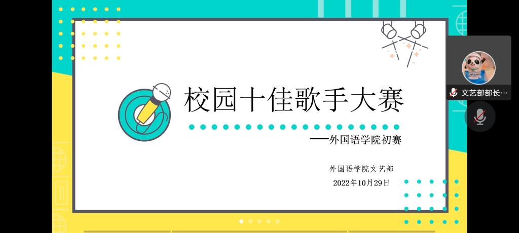 本次活动由选手自由报名参加,参赛选手自行确定歌曲曲目后,在线上进行随机抽签确定出场顺序。21级英语师范五班的张瑞萱同学第一个出场,一首《后来》情感丰富,让人陶醉其中;21级英语师范三班的王浩然同学带来的一首《突然好想你》,歌声婉转动人,情感真挚,令人印象深刻;21级英语师范二班的孙慧妍带来的《最长的电影》,华丽的高音令人震撼。各位选手的表现都十分精彩,给大家带来了一场绝佳的听觉盛宴。最终,在激烈的角逐中,霍泓楠,王浩然,孙慧妍三位同学成功晋级决赛。