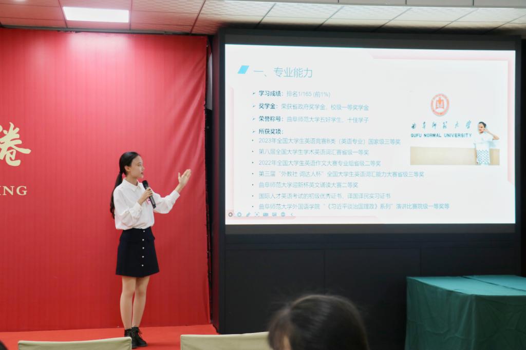经过初赛和复赛的激烈角逐,直播8官网 选手沙渺同学表现优异,代表直播8官网 参加决赛。决赛共包括无领导小组面试、个人展示、答辩三个环节。在无领导小组面试环节,沙渺同学与其他选手经过良好的沟通交流达成统一意见,由所在小组发言人清晰准确地总结小组人员的选择;在个人展示环节,沙渺同学的简历展现出了深厚的专业基础,以流利的口语精准介绍简历,使沙渺同学得到评委老师好评;在答辩环节中,沙渺同学沉着冷静,以全英文应答评委老师的问题,对答如流,为此次答辩增光添彩。最终,沙渺同学在众多选手中脱颖而出,获得一等奖。