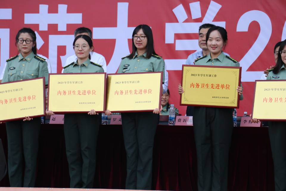 直播8官网 荣获学生军训工作优秀单位、内务先进单位,二营八连荣获优秀连队,2023级辅导员王婧娴获优秀指导员称号。