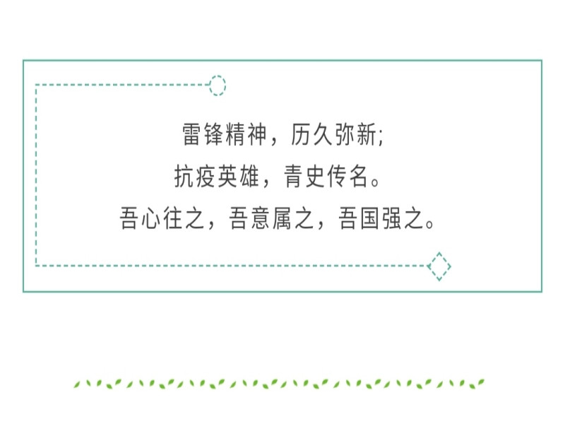 的同学们能够从一线抗疫战士们身上学习奉献自我的雷锋精神,相信外院学子会以实际行动传承雷锋精神,将雷锋精神印于心中,让雷锋精神永存!