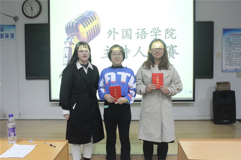 在第一轮比拼中,选手们热情洋溢。不论是抑扬顿挫的双语晚会主持,场内外配合默契的天气预报,还是轻快活泼的娱乐播报,严肃庄重的新闻联播,都展现出了选手们深厚的主持功底。选手们或引经据典,或联系时代,或中外对比,充分显现出他们专业的主持素养和深刻的思想见解,在场观众不禁拍手叫绝。接下来的“妙语连珠”环节重在检验选手的随机应变能力和逻辑思考能力。在面对如此难题时,选手们毫不慌乱。他们的故事逻辑合理,思绪清晰;他们的举止落落大方,从容不迫。最后一个环节中,选手们充分展现了他们多才多艺的特点:悦耳动听的歌曲,捧腹大笑的相声,青春活力的舞蹈使现场的气氛达到了高潮。在比赛过程中,三位评委对选手的表现做出了中肯的评价和指导,他们指出要不断练习普通话发音,选择与自己声音条件相匹配的主持类型,增强对情感的把控度,以及明确主持的实用性等,这些建议使在场的主持爱好者受益匪浅。经过三轮的比拼,十三号选手刘琪,六号选手肖旸、潘群获得了一等奖的好成绩。