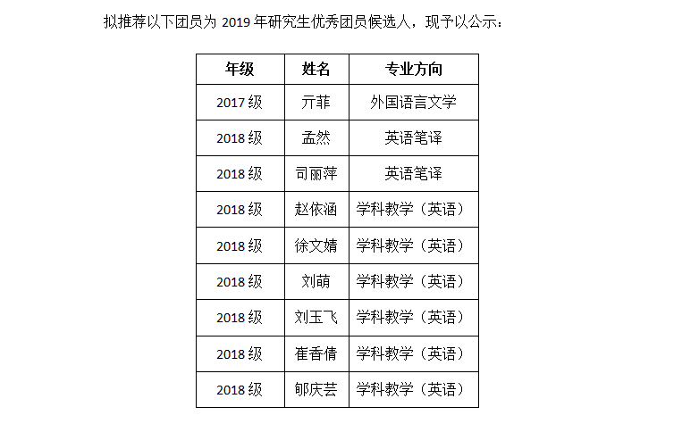 参选学生为2017级和2018级毕业研究生,其中,直播8官网app下载 2017级学术型研究生团员总数为14人,优秀团员1人。2018级毕业研究生团员总数为75人,优秀团员8人。其中学科教学(英语)54人(优秀团员6人),英语笔译21人(优秀团员2人)。2017级和2018级团员总数共计89人,优秀团员共计9人。