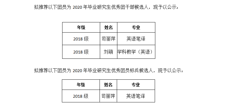 2020届毕业研究生共青团评优工作日程安排及评选结果总体情况