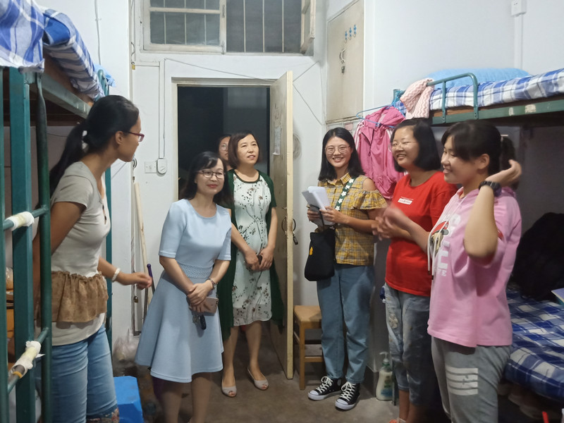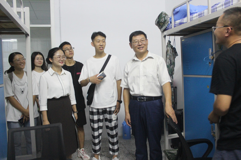 院长秦洪武、党委副书记王作茂、副院长马蓉、副院长王洪明、2017级辅导员冀玉珍、2018级辅导员王旖旎、2019级辅导员张晓带领学生干部代表走访学生宿舍,慰问新生。