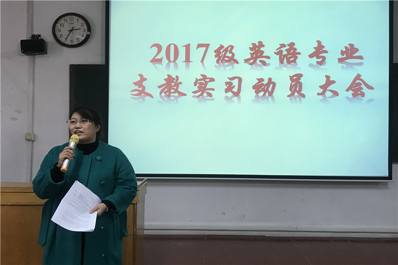 于系楼201教室举办2017级英语专业“实习支教动员大会”。直播8官网