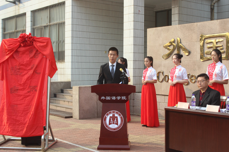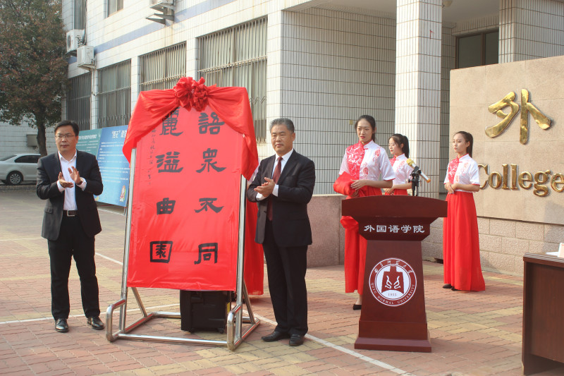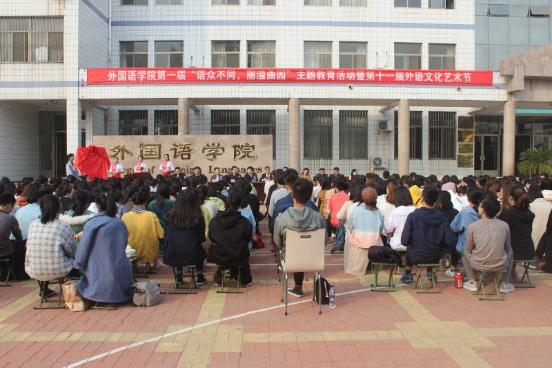 在外语楼前举行第一届“语众不同,丽溢曲园”主题教育活动暨第十一届外语文化艺术节启动仪式。曲阜师范大学党委常委副书记扈庆学、党委常委副校长胡钦晓、党委常委宣传部部长张隆海、学生工作处处长武装部部长姜美颖、社会科学处处长杜曙光、党委组织部正处级组织员宋广新、团委书记宋国栋、直播8官网