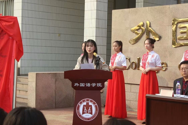 仪式最后,学校党委副书记扈庆学和副校长胡钦晓共同为本次外语文化艺术节主题“语众不同,丽溢曲园”揭幕。本次启动仪式在同学们的热烈掌声中圆满结束。