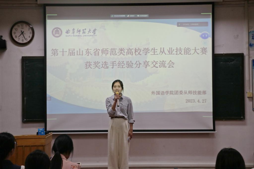 为弘扬五四精神、汲取榜样力量,并进一步提高直播8官网 师范生的从业技能水平。4月27日,直播8官网 于系楼201教室举办第十届山东省师范类高校学生从业技能大赛获奖选手经验交流会。本次经验交流会邀请了张文哲、张翼、焦亚蕊、王晶、姜艳芳、张宝玲六位获奖选手进行经验分享,直播8官网 2020级、2021级全体师范生参加。