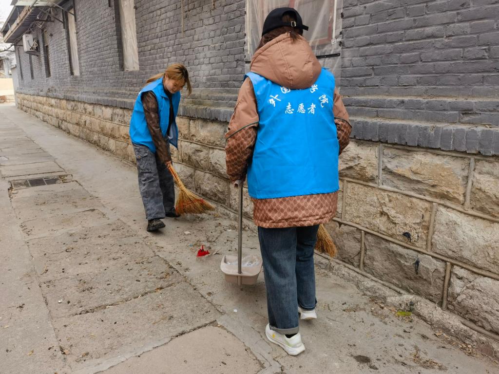 多名学生志愿者走进鲁城街道阙里社区,开展环境卫生清扫志愿服务活动。