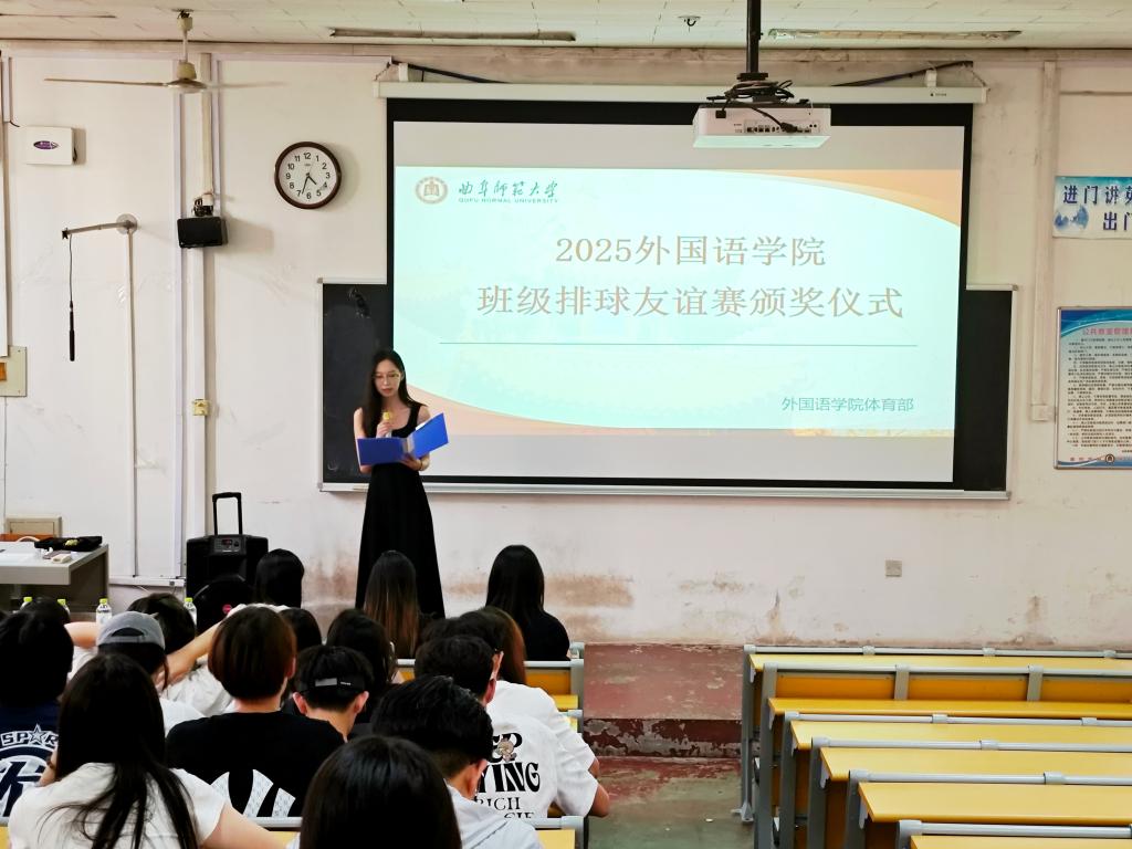 为丰富课余生活,凝聚班级力量,直播8官网 于 6 月 3 日在系楼前举办第十二届班级排球赛决赛,并于 6 月 6 日在系楼 101 教室举行颁奖典礼。学生会副主席唐璇、秘书长孙凌洁、体育部部长刘博音出席本次颁奖典礼。