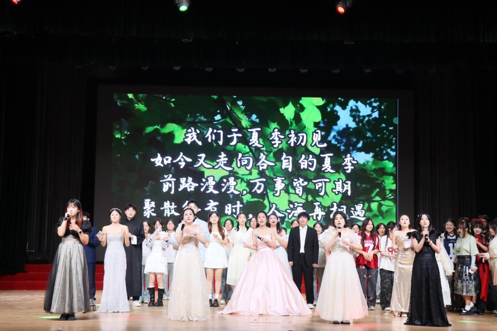 “时光的河入海流,终于我们分头走……”当熟悉的旋律响起,晚会主持人用温情的话语揭开了合唱环节的序幕:“这场晚会藏着太多‘最后一次’——最后一次点名,最后一次与同学们合唱……而这些‘最后一次’,都将成为我们青春里最珍贵的注脚。”