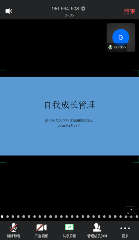 会议开始,张立昌老师主持介绍出席本次会议的校友高效云老师。随后高效云老师从两个方面对2020届毕业生进行指导。首先,高效云老师介绍了个人学习工作经历,从曲阜师范大学毕业以后到了菏泽巨野任英语教师,随后考入了南京大学的研究生,毕业后在中欧国际工商直播8