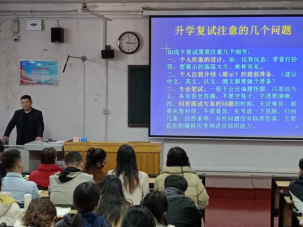 会上,党委副书记王作茂分析了我校近年来升学面临的问题,向同学们提供了推免、考研、出国深造等升学途径的第一手资讯,帮助同学们确立努力方向。同时,王作茂书记向同学们解读了有关复试调剂的最新政策,并向同学们讲授了获取各类信息具体的经验方法以及在考研复试中需要注意的问题。他指出,当前考研“内卷化”现象严重,希望同学们懂得结合自己的长处,以平和的心态应对复试的考验。随后,团委副书记张晓为同学们分析了当前就业的形势和挑战,告诫同学们要正确认清形势、不断积累经验并及时把握就业机会。在交流会最后,王作茂书记与同学们就目前遇到的困惑和问题进行了交流,在场的同学都表示收获颇丰。