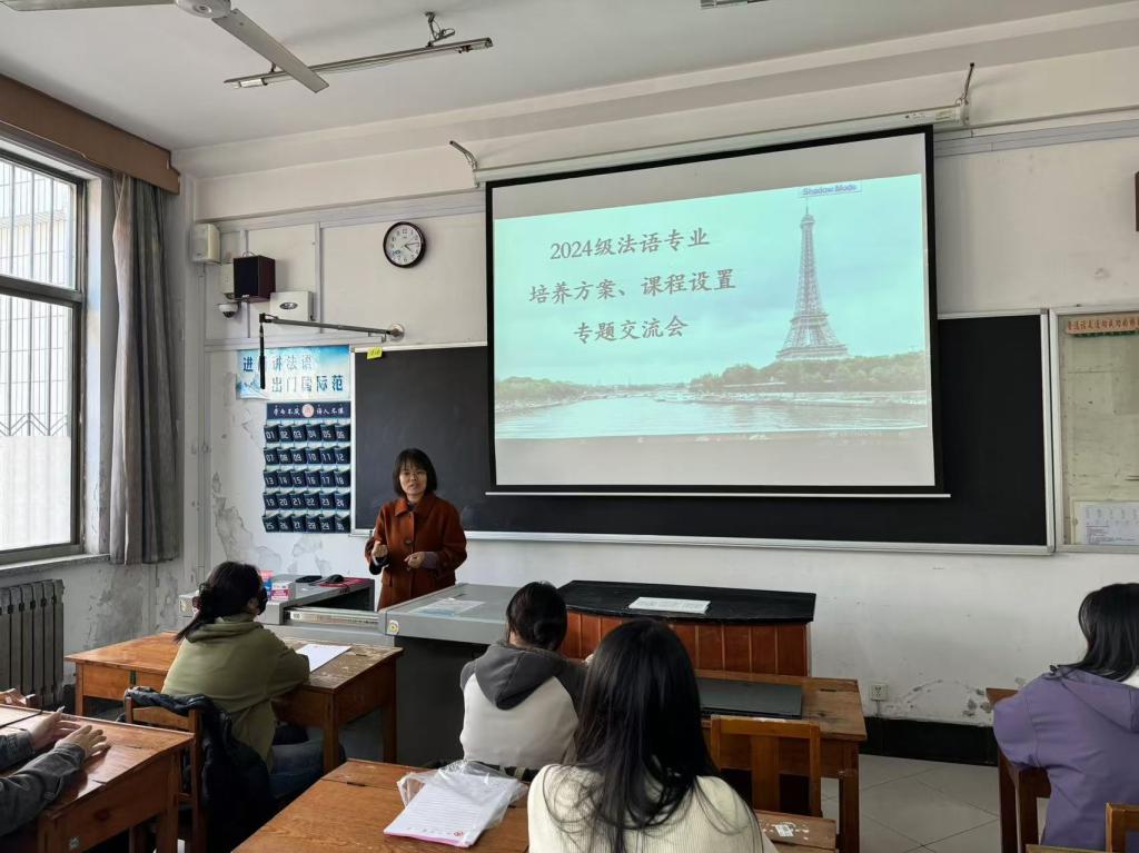 副院长邢加新、俄语专业主任田守欣、法语专业主任唐友霞以及教务老师李娜主讲,2024级辅导员王伟老师主持。