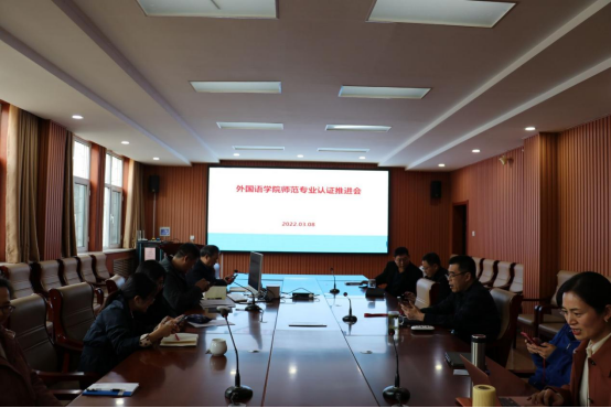 党委书记费沂涛、院长秦洪武、党委副书记王作茂及师范认证小组全体成员参加本次会议,就认证工作的规划、进度进行了讨论与说明。