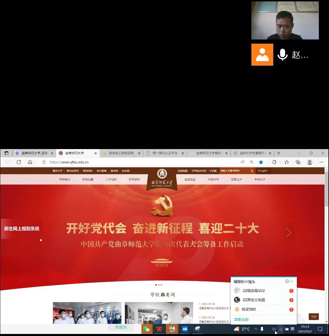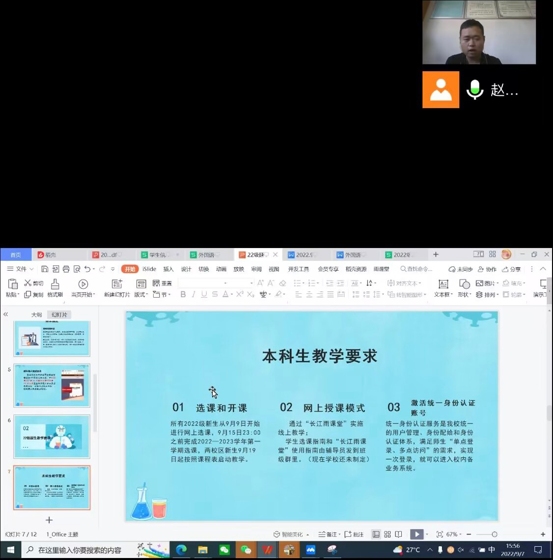 2022级辅导员赵文彬和教务处李娜老师分别向新生介绍了线上报道要求和选课流程,直播8官网