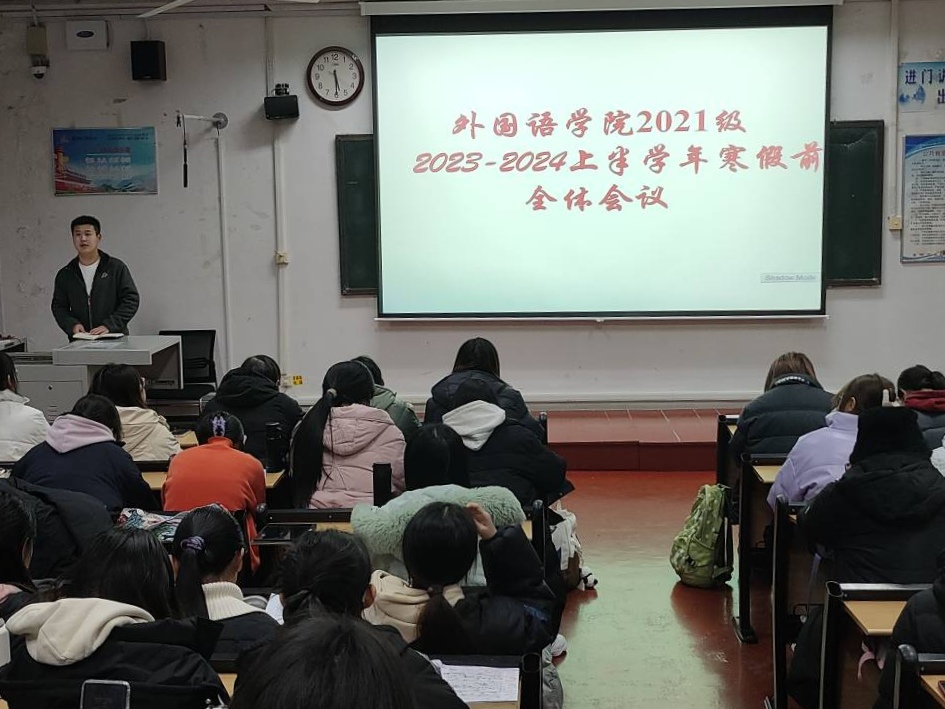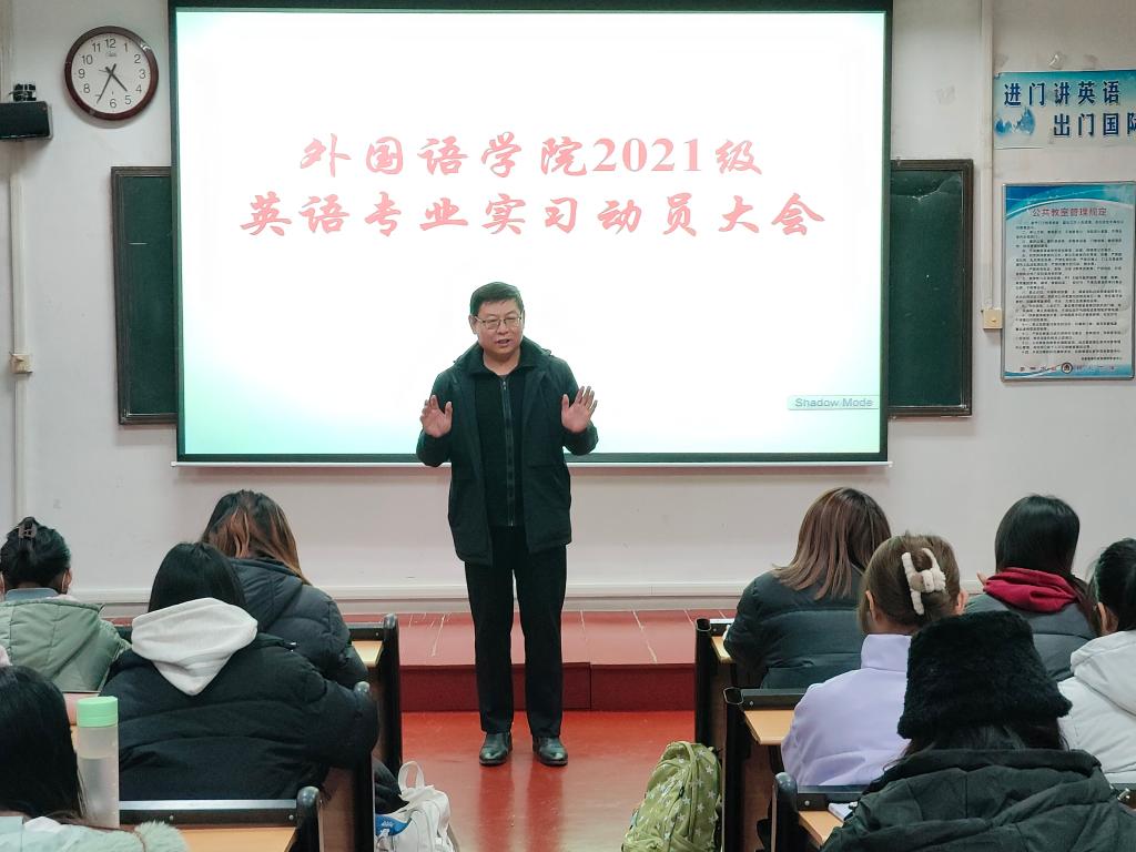 为推进实习工作的顺利开展,引导学生做好实习前的各项准备工作,提高安全意识和责任意识,110日下午,直播8官网 于系楼201教室举办2021级英语专业实习动员大会。此次会议由直播8官网 2021级辅导员王仁杰主持,直播8官网 党委副书记王作茂,副院长邢加新,英语系主任徐欣出席,2021级全体英语专业学生参加。