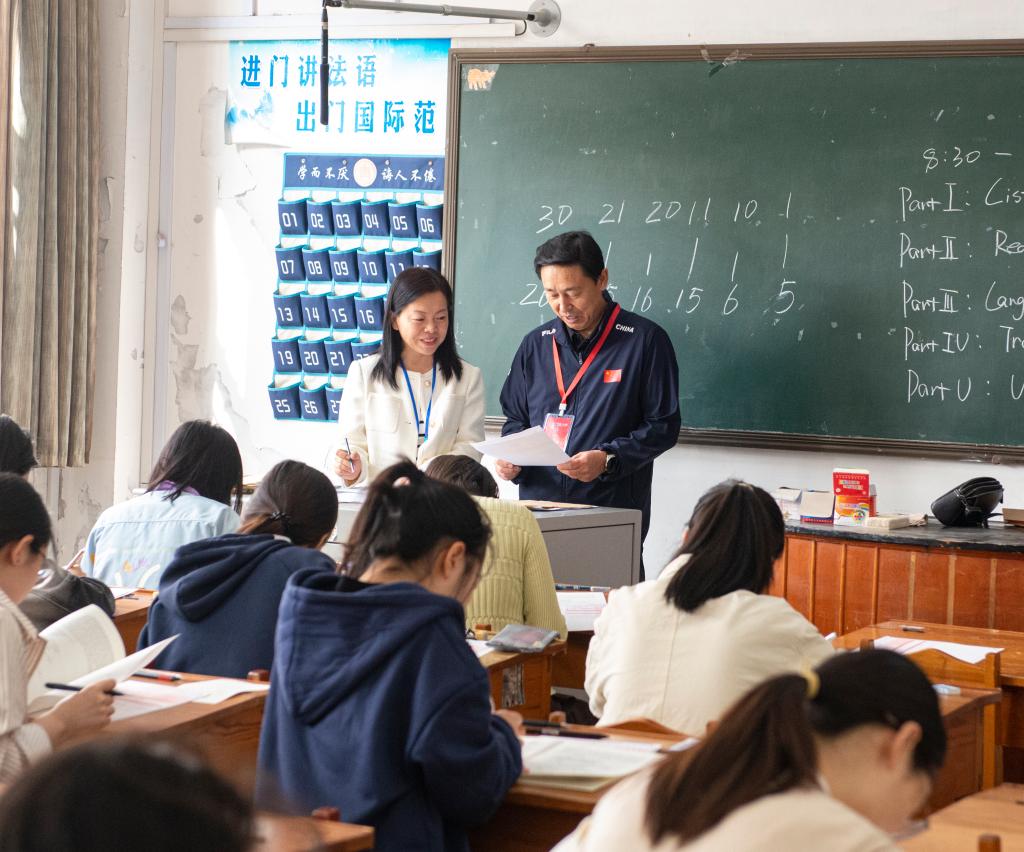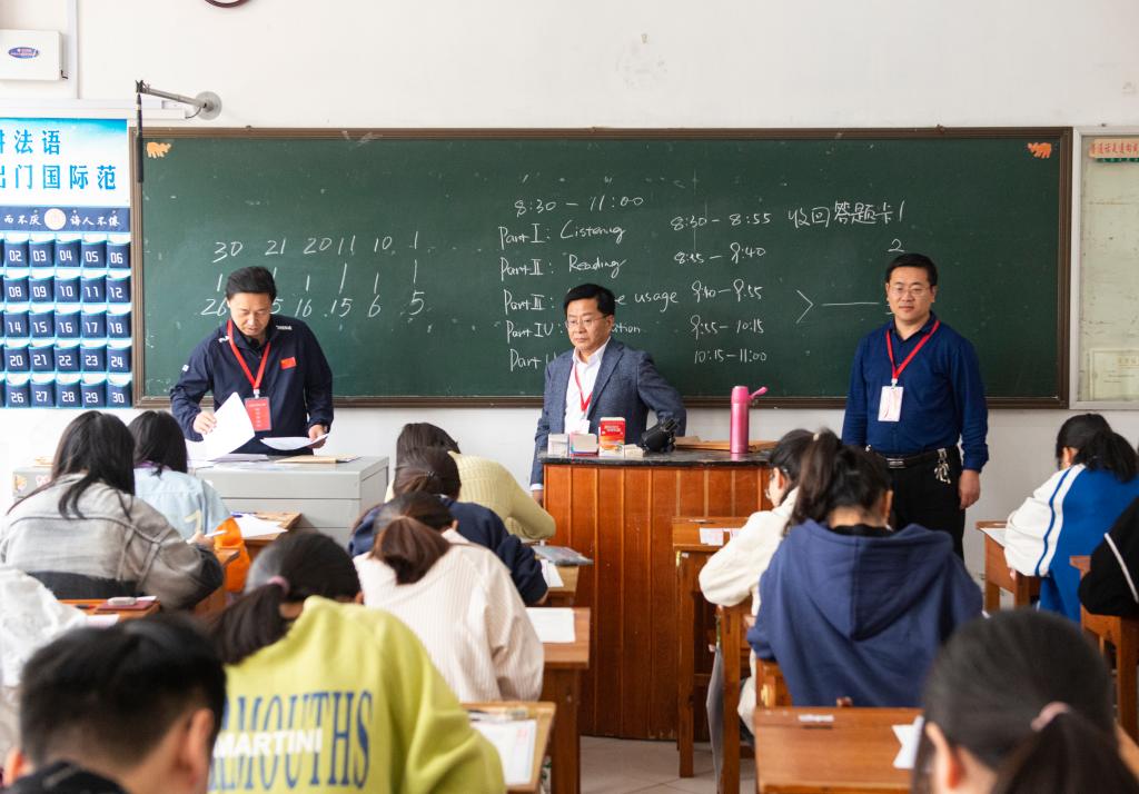 直播8官网 于2024年4月13日上午举行英语专业八级考试,为确保专业等级考试顺利进行,提高直播8 组织考试的规范性,促进诚信考风建设,落实考试监督职责,曲阜师范大学校长张洪海、教务处处长李傅山同直播8官网 院长秦洪武及其他相关人员,深入直播8 考场巡视检查。